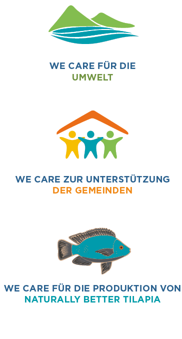 Im Rahmen unseres Nachhaltigkeitsprogramms Regal Springs WE CARE soll die Produktion unseres Buntbarschs unter Berücksichtigung der Bedürfnisse des Verbrauchers an erster Stelle ohne Beeinträchtigung der Nachhaltigkeit erfolgen. Unser Engagement ist nicht nur für den Verbraucher von Vorteil, sondern auch für die Gemeinden und Wirtschaftssysteme in den Ländern, in denen wir Fischzucht betreiben, denn wir sorgen gleichzeitig für den Erhalt von Umwelt und Naturressourcen. Unser integriertes Nachhaltigkeitsprogramm Regal Springs WE CARE umfasst drei Säulen zur nachhaltigen Entwicklung: Umwelt, Soziales und Wirtschaft. Die Bezeichnung WE CARE für unser integriertes Nachhaltigkeitsprogramm beruht darauf, dass wir bei Regal Springs zuhören. WE CARE erfasst das Engagement unserer Mitarbeiter und Kollegen sowie die unternehmerische Tradition der letzten einunddreißig Jahre, in denen das Handeln des Unternehmens von sozial verantwortungsvollem, ethischem Bewusstsein geprägt ist. Im Rahmen unseres Nachhaltigkeitsprogramms Regal Springs WE CARE soll die Produktion unseres Buntbarschs unter Berücksichtigung der Bedürfnisse des Verbrauchers an erster Stelle ohne Beeinträchtigung der Nachhaltigkeit erfolgen. Unser Engagement ist nicht nur für den Verbraucher von Vorteil, sondern auch für die Gemeinden und Wirtschaftssysteme in den Ländern, in denen wir Fischzucht betreiben, denn wir sorgen gleichzeitig für den Erhalt von Umwelt und Naturressourcen. Unser integriertes Nachhaltigkeitsprogramm Regal Springs WE CARE umfasst drei Säulen zur nachhaltigen Entwicklung: Umwelt, Soziales und Wirtschaft. Die Bezeichnung WE CARE für unser integriertes Nachhaltigkeitsprogramm beruht darauf, dass wir bei Regal Springs zuhören. WE CARE erfasst das Engagement unserer Mitarbeiter und Kollegen sowie die unternehmerische Tradition der letzten einunddreißig Jahre, in denen das Handeln des Unternehmens von sozial verantwortungsvollem, ethischem Bewusstsein geprägt ist.
